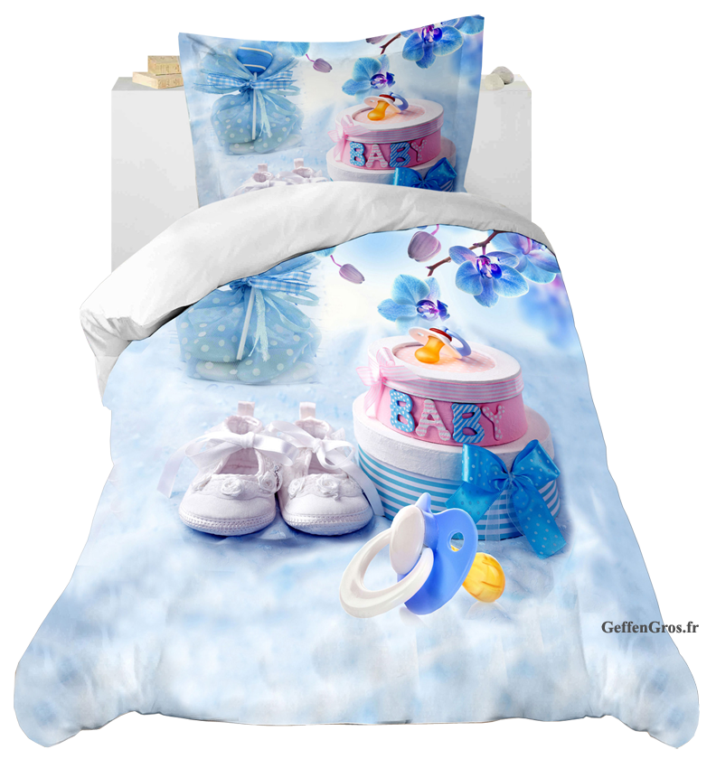 Il s'agit d'un Set de Housses 3D (motif: Tétine & Cupcake) de dimension 140cm x 200cm comprenant: