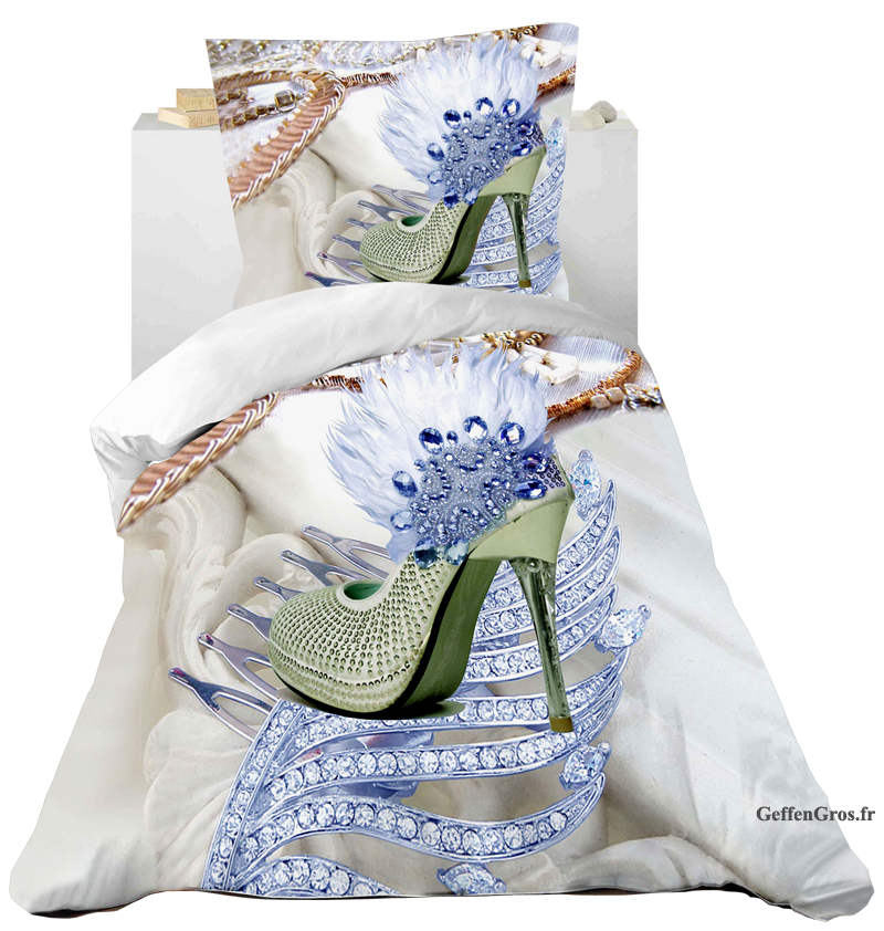 Il s'agit d'un Set de Housses 3D (motif à Escarpins) de dimension 140cm x 200cm comprenant: