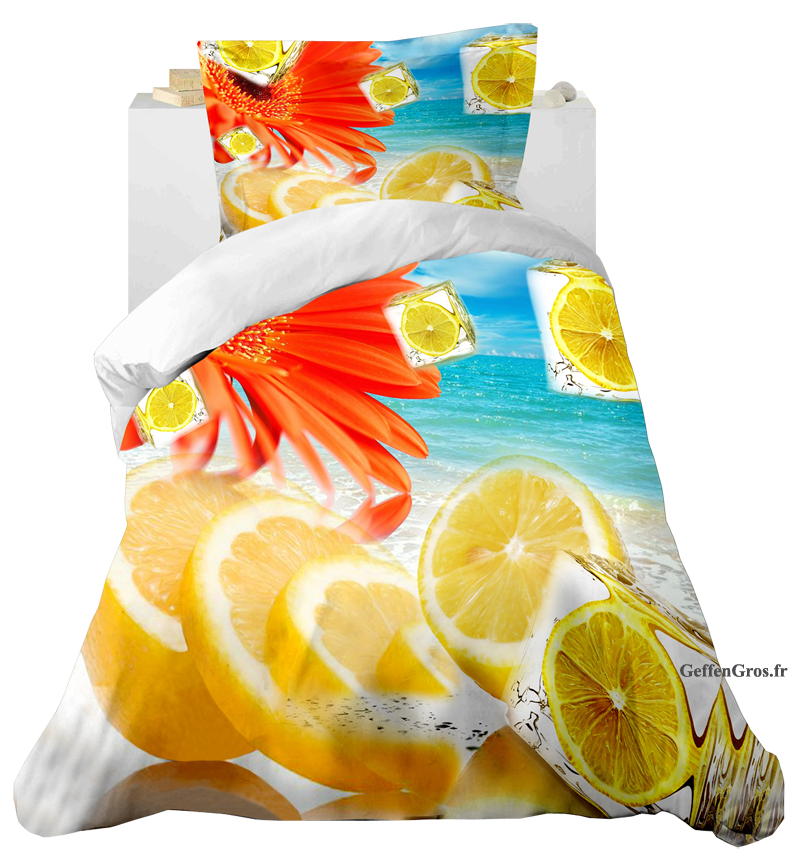Il s'agit d'un Set de Housses 3D (motif: Rondelle de Citrons) de dimension 140cm x 200cm comprenant: