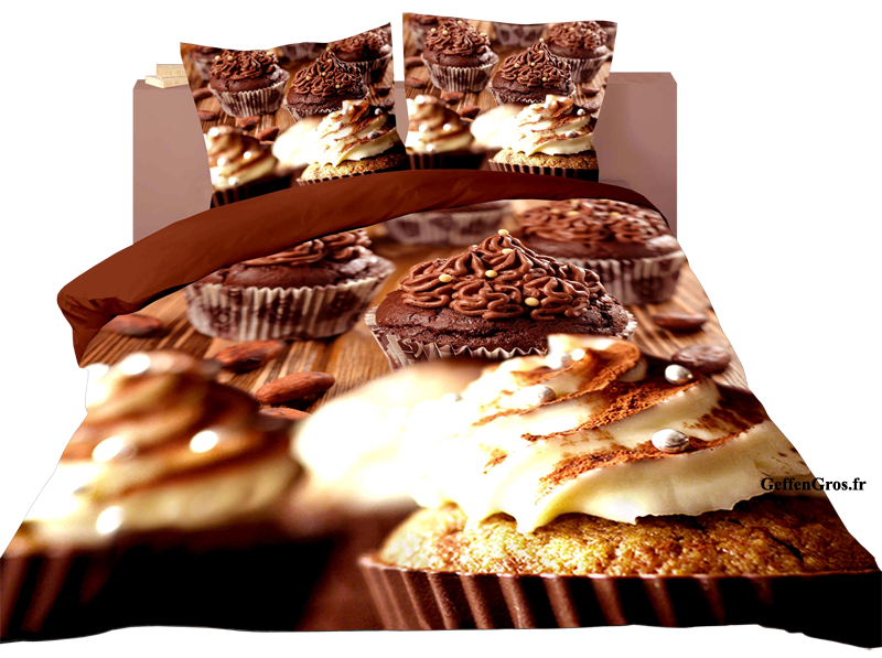 Il s'agit d'un Set de Housses 3D (motif: Cupcakes & Amandes) de dimension 220cm x 240cm comprenant: