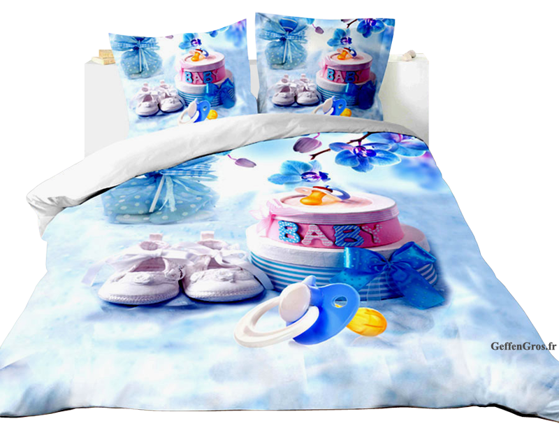 Il s'agit d'un Set de Housses 3D (motif: Tétine & Cupcake) de dimension 220cm x 240cm comprenant: