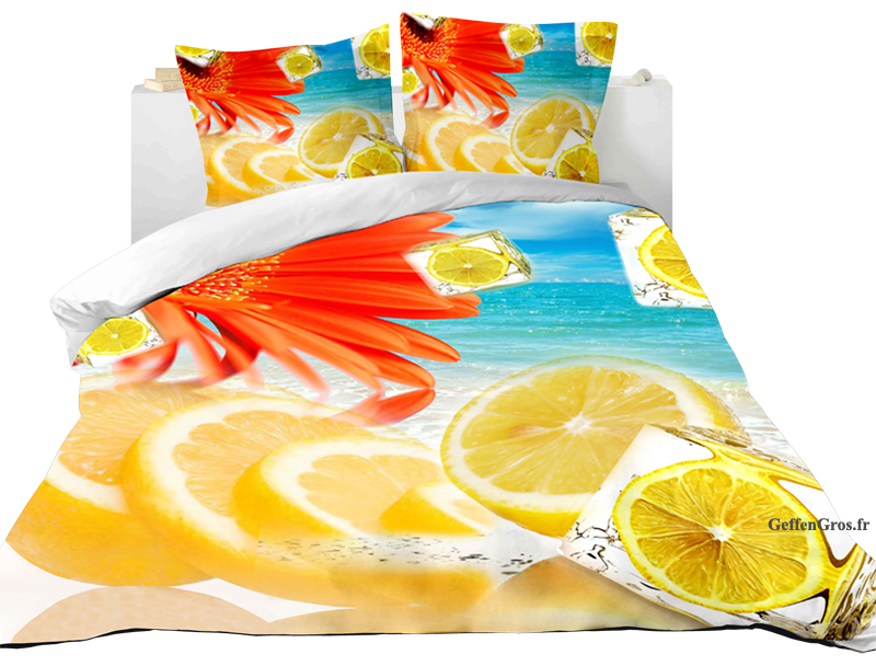Il s'agit d'un Set de Housses 3D (motif: Rondelle de Citrons) de dimension 220cm x 240cm comprenant: