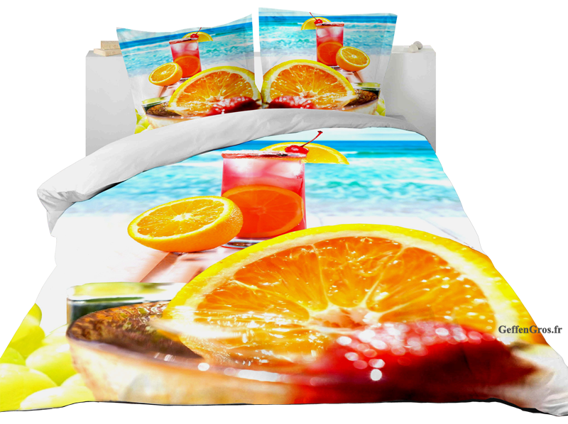Il s'agit d'un Set de Housses 3D (motif: Cocktail sur la plage) de dimension 220cm x 240cm comprenant: