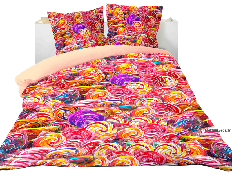 Il s'agit d'un Set de Housses 3D (motif: Sucette & Lollipop) de dimension 220cm x 240cm comprenant: