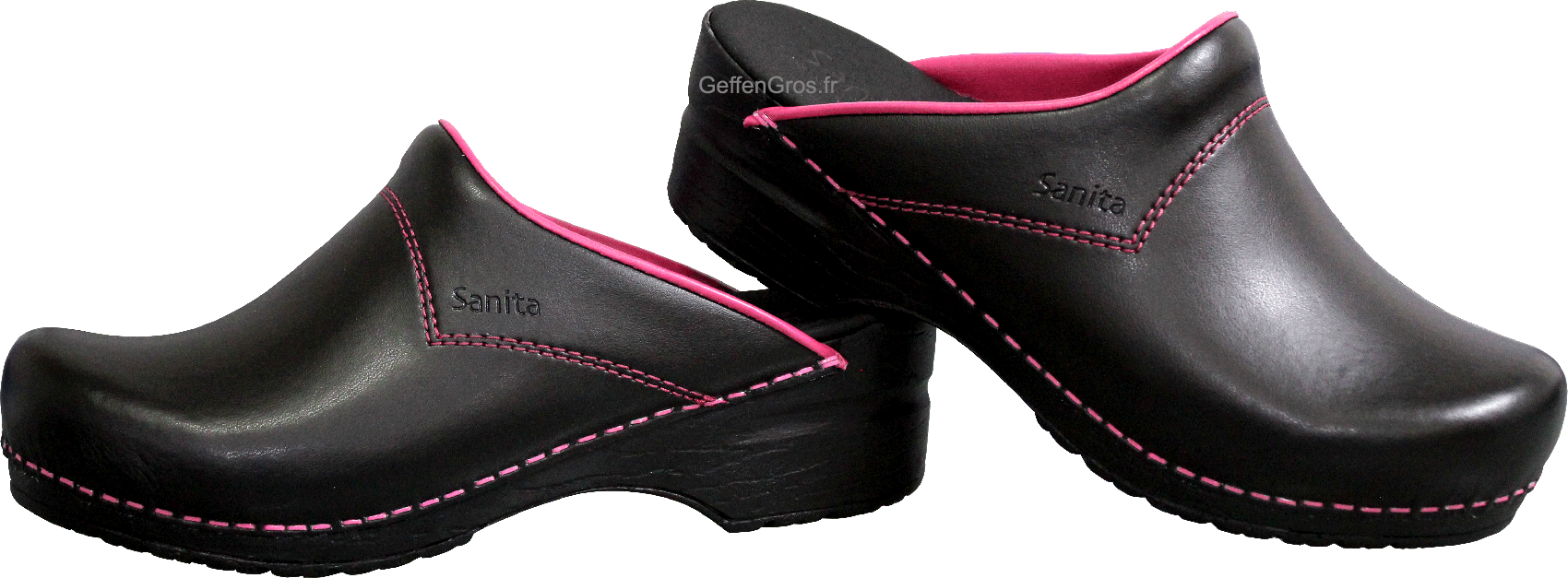 Sabot Personnalisé Fillette Noir Mat & Rose - 2 coutures