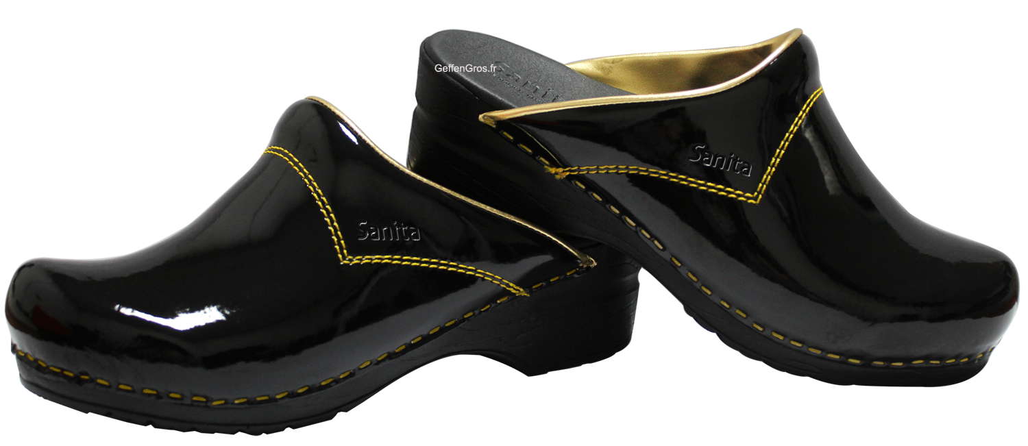 Sabot Personnalisé Femme Noir Vernis & OR - 2 coutures